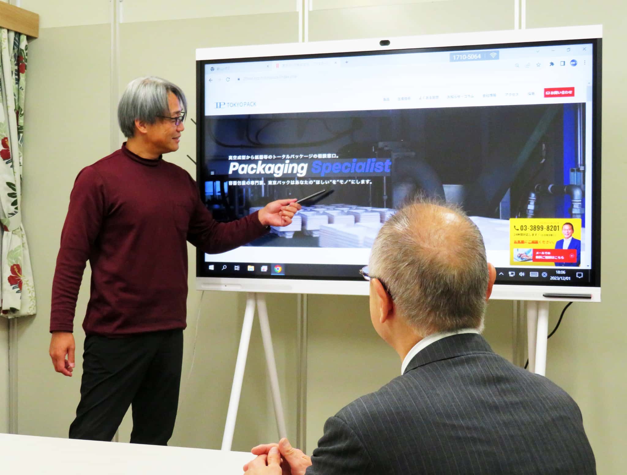 また、本社にお越しの際には、大画面越しに当社の工場をWEB見学することも可能です。
